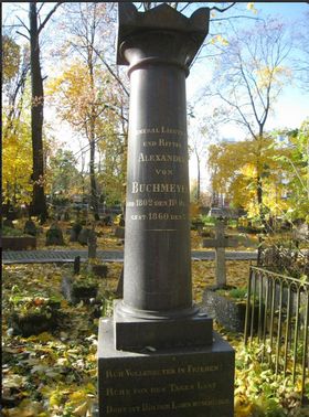 - - София Ефимовна Бухмейер (7 марта 1788 - 27 июля 1849) - Смоленском лютеранском кладбище, участок 3 , колонна на постаменте.