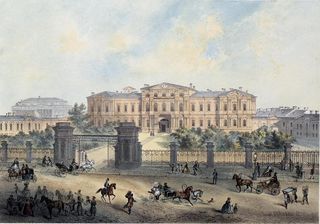 Пажеский корпус. Литография по рисунку И. И. Шарлеманя, 1858.